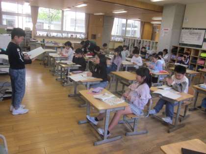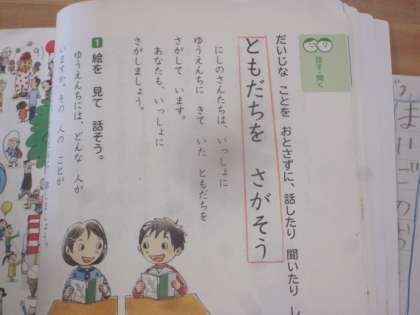 友達の説明をしっかりと聞いて、「教科書に描かれている友達」を探しました。