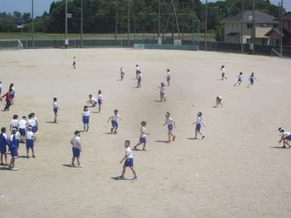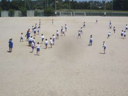 運動会に向けて投げ方を確認しました。どれだけ自己記録を更新できるか楽しみです。