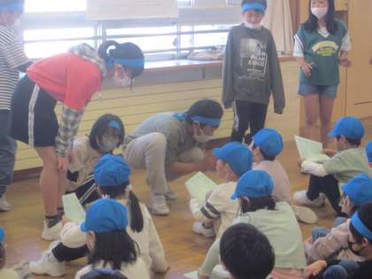 1年生に優しく教えています。
