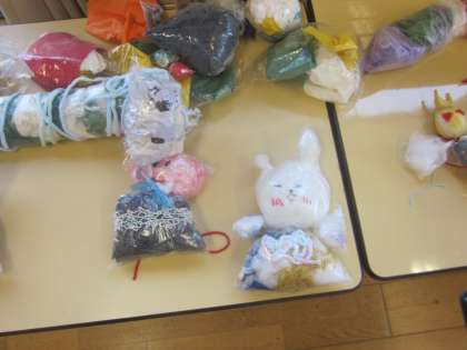 透明な袋とカラフルな材料を使って、お気に入りの友達をつくりました。
