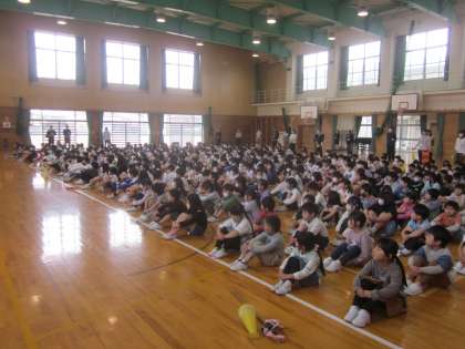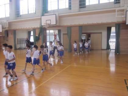 理科室出火を想定して避難訓練を行いました。昨年度と比べると「静かに」集合することができました。
