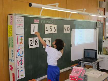 1〜9の数字を使って、あわせて10になる組み合わせを見付けました。友達の考えを聞き、答えを確かめました。