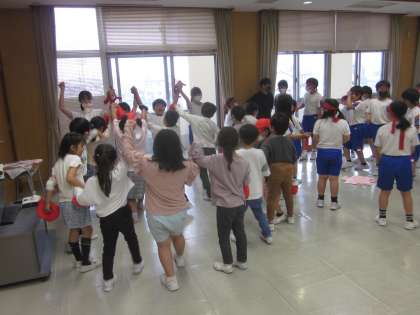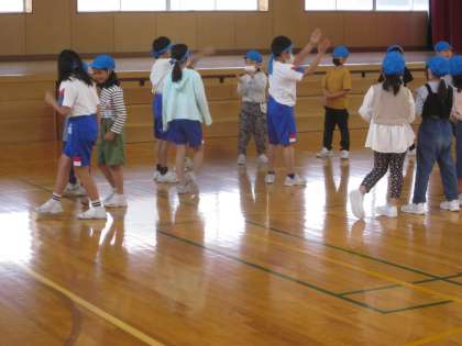 学年ごとに分かれて応援練習をしている団がいくつもありました。手のひらを向ける向き、足の動かし方等、6年生が丁寧に教えてくれています。