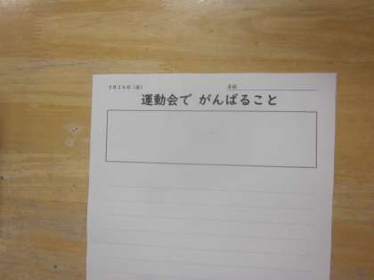 頑張りたいことを決めました。競技だけではなく、応援や団席での態度についても頑張りたいと考えている子供もいました。