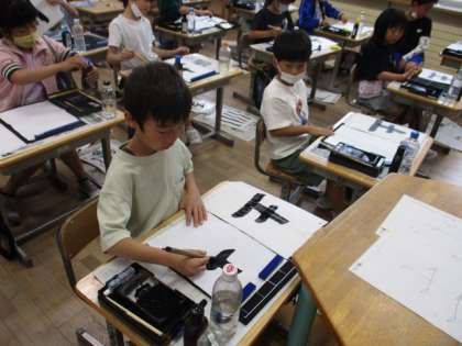 穂先の向きや筆の持ち方に気をつけながら、「たて画」の練習をしました。