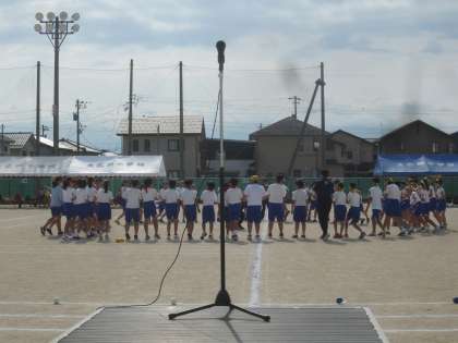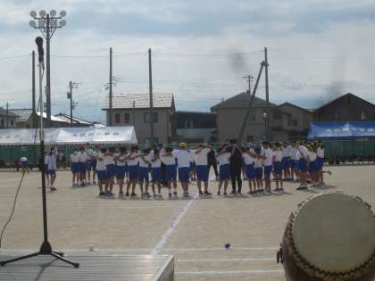 開始前の6年生、全員で円陣を組み、かけ声をかけて臨みます。