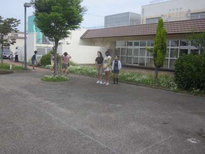 運営委員に加え、5年生も自主的にあいさつ運動に参加しています。