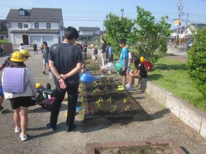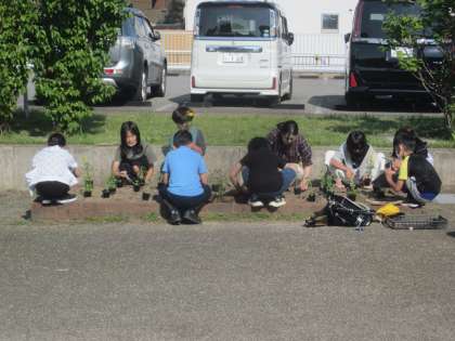 花壇に花を植えました。4月から一人一人が自分で決めた朝活動に取り組んでいます。