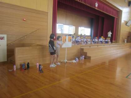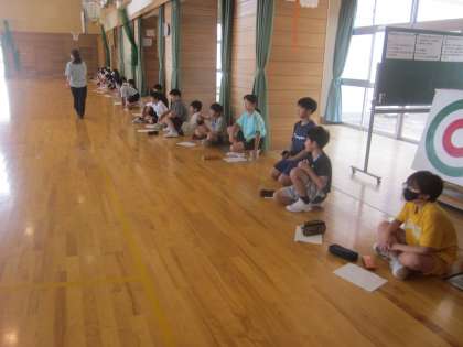 1年生の新体力テストのシャトルラン計測を6年生が手伝いました。