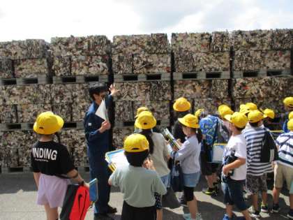 リサイクルセンターでは、資源ゴミがどのように生まれ変わるかを教えていただきました。