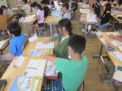 今日は好きな漢字の画数を英語で表しました。友達の数字を見て英語で発声しました。