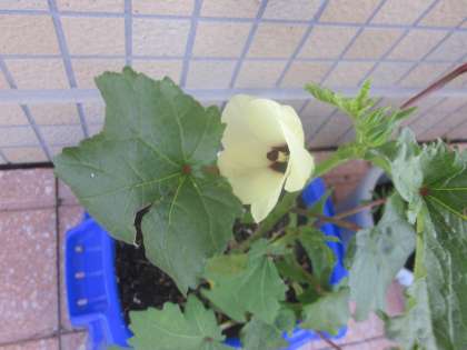 昨日からさらに成長しています。オクラの花はとてもきれいです。