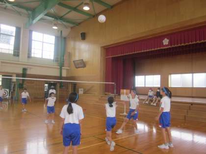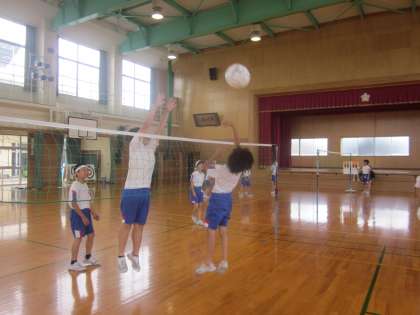 「相手からのサーブをキャッチしてもよい」というルールにしています。このルールだと、サーブだけで勝敗が決まってしまうゲームになりにくく、楽しみながら活動できます。