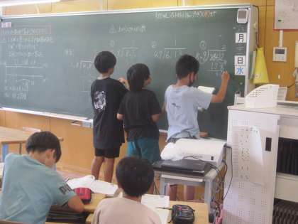 小数のわり算の筆算です。正確に速く計算できるように頑張っています。