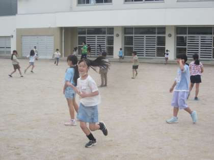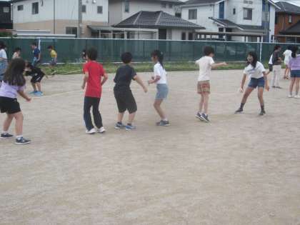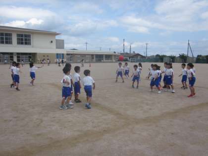 今日から「鬼ごっこ、ドッジボール、大波小波」に取り組んでいます。