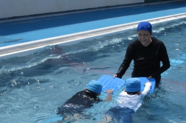 アピアスポーツクラブから講師の方々に来ていただき、水泳の講習を受けました。