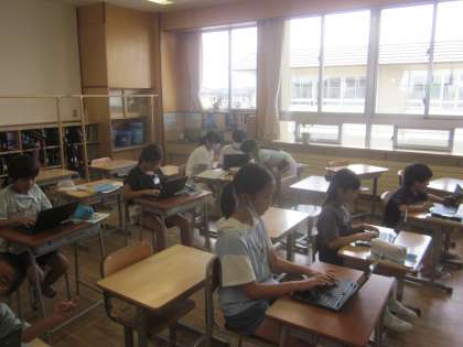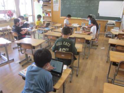 少人数学習です。課題が終わった子供からクロムブックで復習です。