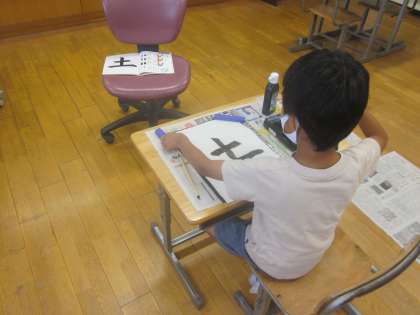 習字の時間に「土」を書きました。「とめ」を意識して書きました。