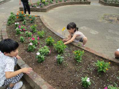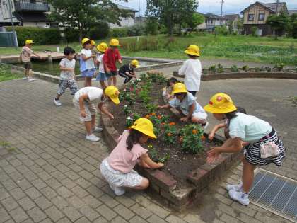 下校前の自主活動の時間です。恵みの雨が降り、花壇の花が元気に育っていますが、雑草も元気に育っています。気付きにくい所の雑草も見逃さず、草むしりをがんばりました。
