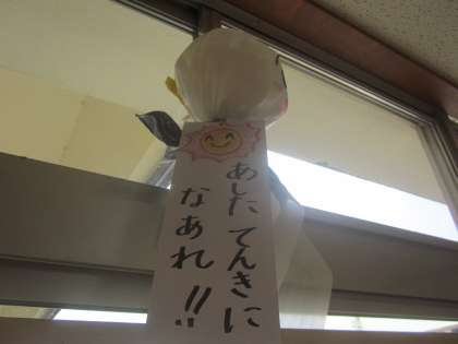 てるてる坊主をつくりました。晴れてください。
