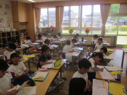 今日はインタビューの日です。聞き取ったことを教室でまとめました。