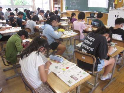 植物の体について学習をしています。人間と比べて、同じところや違うところに気づいたり、普段よく目にする野菜の断面を思い出したりしながら、より理解を深めていました。