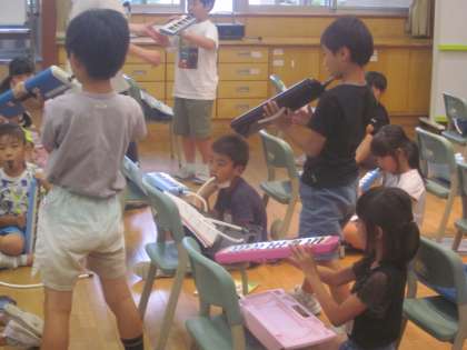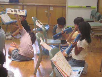 鍵盤ハーモニカで「かっこう」を演奏しました。かっこうが飛んでいるようでした。