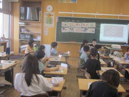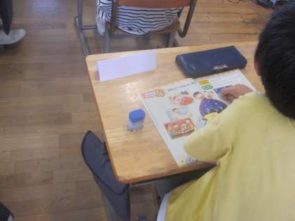 外国語活動で時間の聞き方と答え方を学習しました。