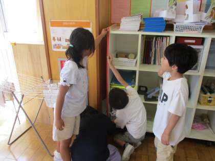 紙テープで教室の中にあるいろいろな物の長さをくらべました。