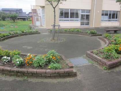 中庭の花壇です。1・3年生がお世話をしています。