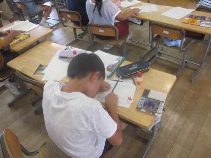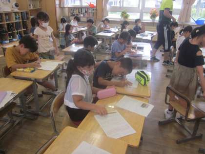 身近にあるもので「あまりのある割り算」の問題づくりを行っています。