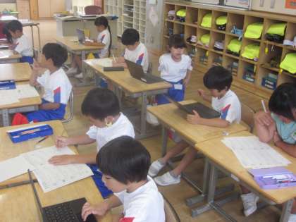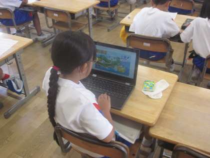 スマイルネクストで問題を解いたり、タイピング練習をしたりしました。上手に操作しています。