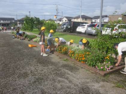 4年生と5年生が手入れをしています。