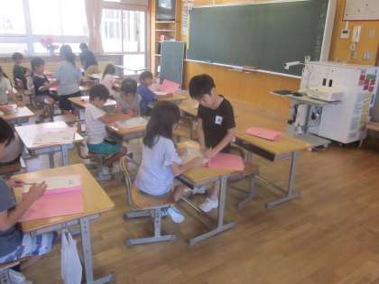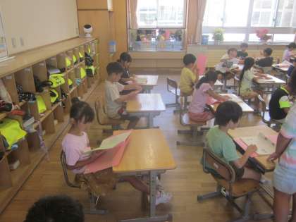 プリントやカードをファイルにとじました。初めての挑戦でしたが、友達と協力してとじました。