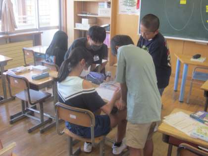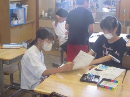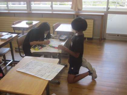自分が考えた環境に対する取組や分かったことを発表します。リハーサル中です。
