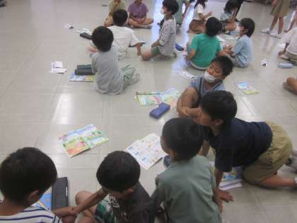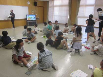 今日は好きな色について学習しました。赤 レッド、白 ホワイトなどなど