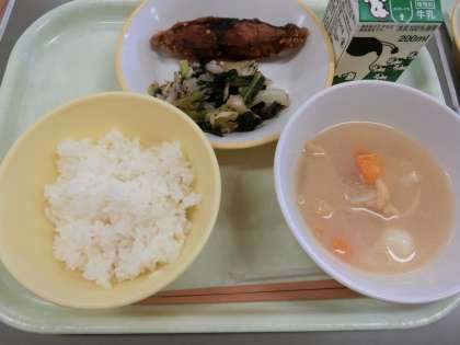 今日の献立は「ご飯、牛乳、魚の竜田揚げ、梅肉和え、白玉汁」でした。今日で1学期最後の給食となりました。楽しい夏休みが始まりますね。夏休み中も規則正しい生活を心がけ、バランスのとれた食事をとって、暑い夏を元気にすごしてください。2学期の給食は8月29日(火)からです。