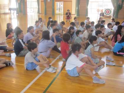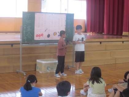 ドッヂボール担当による結果発表と、全体を進行する司会者です。はきはきと大きな声で説明しました。