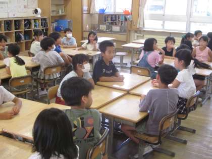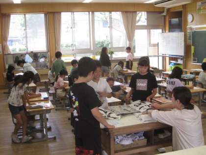 がんばった夏休みの宿題を提出して、グループゲームで楽しい時間を過ごしました。