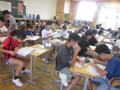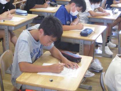 友達と宿題を教え合ったり、夏休みの思い出を作文に書いたりしました。字数制限のある中で、どのように自分の思いを伝えようかとどの子も真剣です。