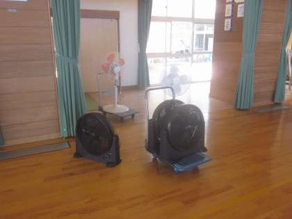 今日は市役所職員、地区センター所員の方々が来校され、避難所開設訓練を行います。