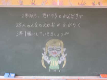 始業式の黒板 3年生