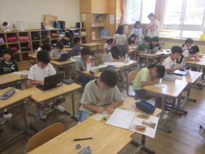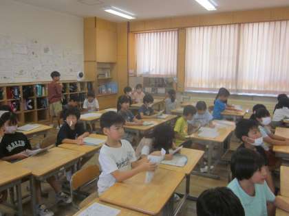 自分の作品をもう一度見ながら、工夫したことや頑張ったことを文章にまとめています。