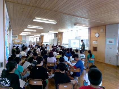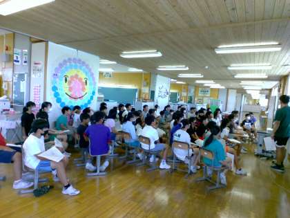 9月に行われるチャレンジ陸上記録会について、しおりを見ながら打ち合わせをしました。当日は、自分たちで予定通りに行動しなくてはいけないので、真剣に話を聞いています。