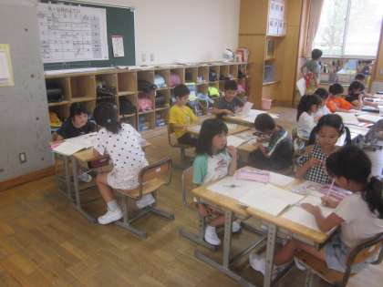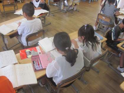 教科書の詩を視写しました。 ペアで読み方を確認しています。