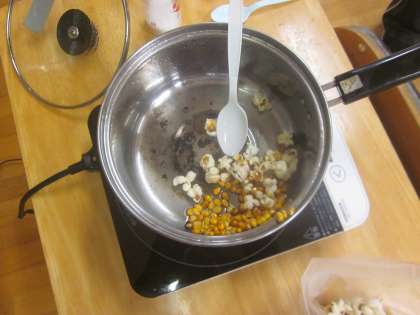 熱を加えるとトウモロコシの変化していく姿が面白いですね。