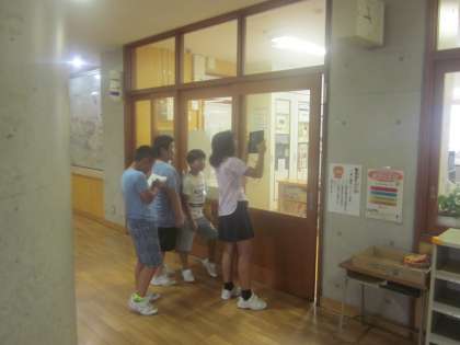 もし地震が起きたとき、学校の危険な場所はどこかを調査しました。