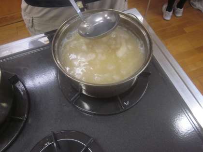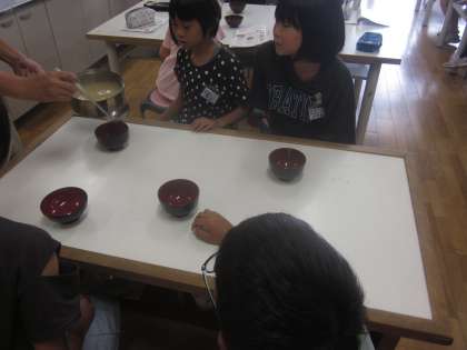 今日は出汁を入れた味噌汁と出汁を入れていない味噌汁の飲み比べをしました。
