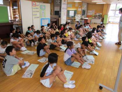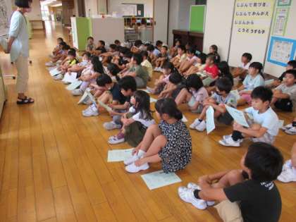 校外学習についての話を聞きました。真剣な表情で聞いていました。