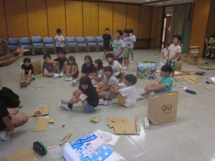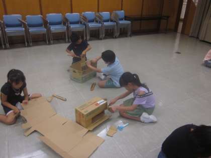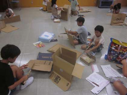 カッターで段ボールを好きな形に切り、組み合わせています。